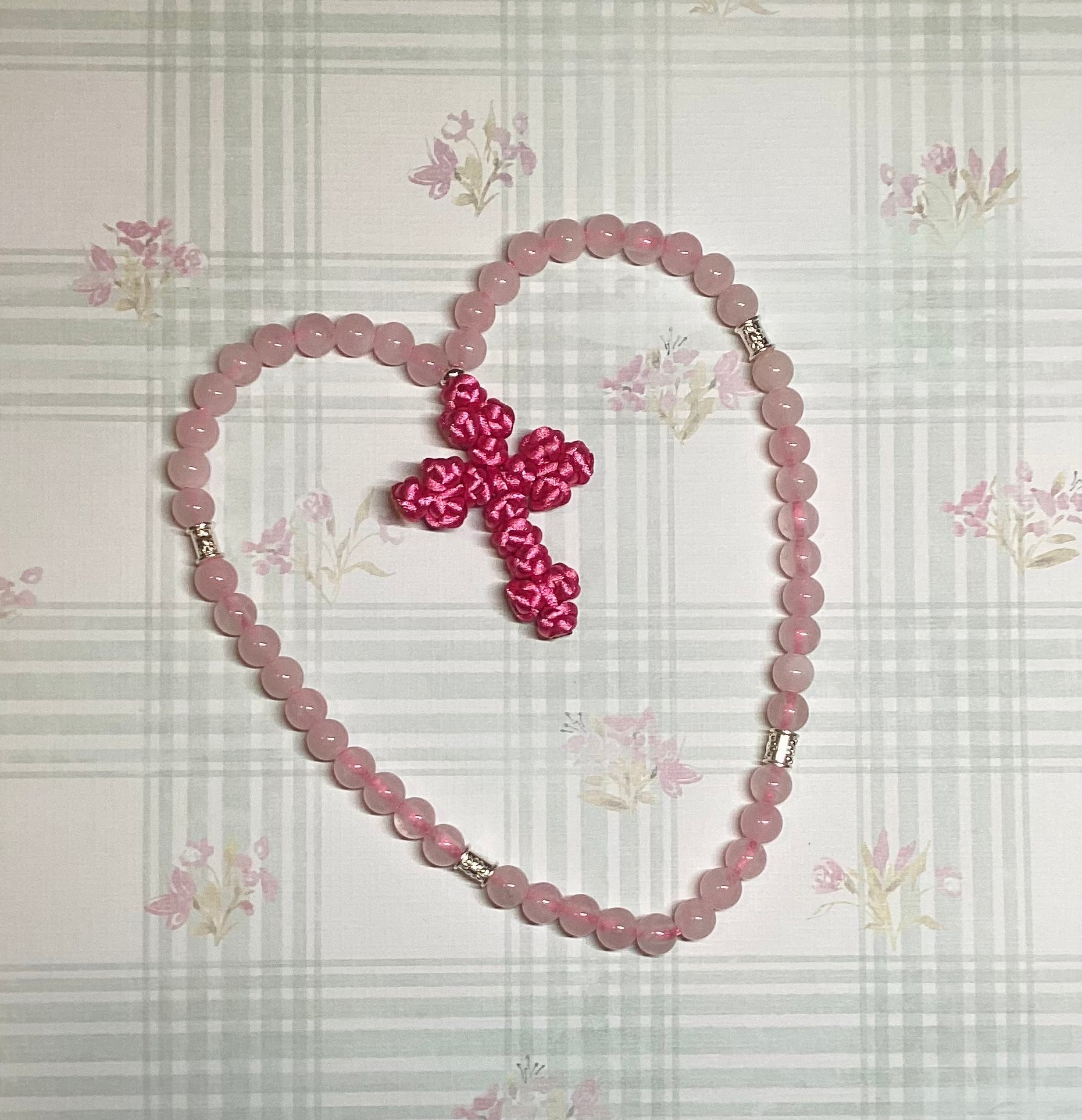 Rose quartz gemstone beaded prayer rope chotki with knotted cross